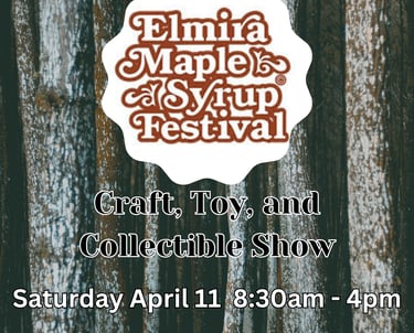 Friday April 4 7-9pm and Saturday April 5 8:30am - 4pm, come find us in the Craft, Toy, and Collectible Show at the Elmira Maple Syrup Festival! It's located in the gym at Elmira District Secondary School and there's an admission fee of $5 per person.